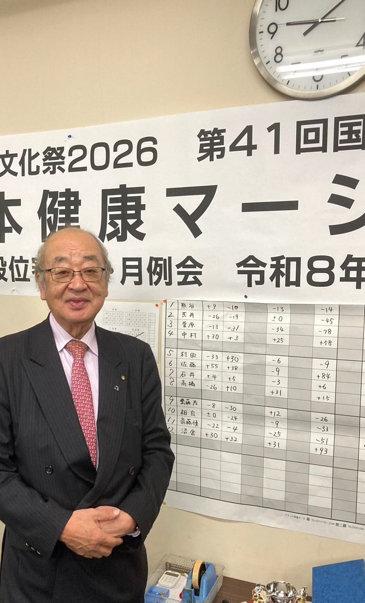 令和7年度第二回麻雀大会(11月13日)が開催されました 2025/11/18 so.syo.arai 第二回麻雀大会(令和7年11月13日)の報告 今年度第二回麻雀大会が、開催されました。今回は、12名参加の大会でしたが、 3回戦の熱い戦いが繰り広げられました。 優勝は、沼倉和彦氏で、2回目の優勝もパーフェクト(3回連続トップ)での 優勝でした。沼倉様、まことにあめでとうございました。 前回優勝者の佐藤氏(右)から今回優勝者沼倉氏へカップお渡し(071113) 優勝した沼倉氏(071113)