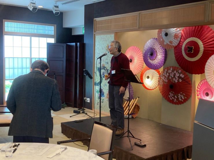 第二部演奏会は、齋藤相談役による乾杯のご発声後、尺八奏者の平澤真悟氏と