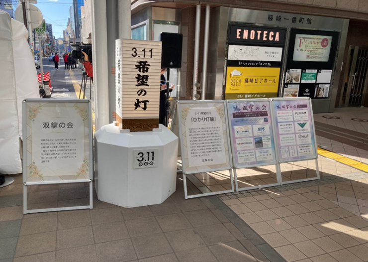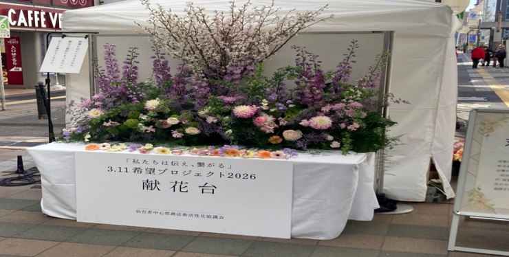日頃より、会活動へご支援をいただき、まことにありがとうございます。 3月11日、東日本大震災後15年の追悼行事を、商店街と連携し、 一番町ぶらんど~む商店街にて開催いたしました。 15年の節目ということもあり、昨年より、多くの皆様が追悼においでになりました。 お集まりになった方全員で14時46分に黙祷を行い、追悼の意をお伝えしました。 黙祷前後には、地元ミュージシャンによる鎮魂の演奏があり、それぞれの思いで この日を迎えました。お忙しい中、献花においでいただいた会員の皆様方、ありがとうございました。