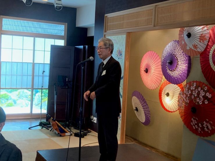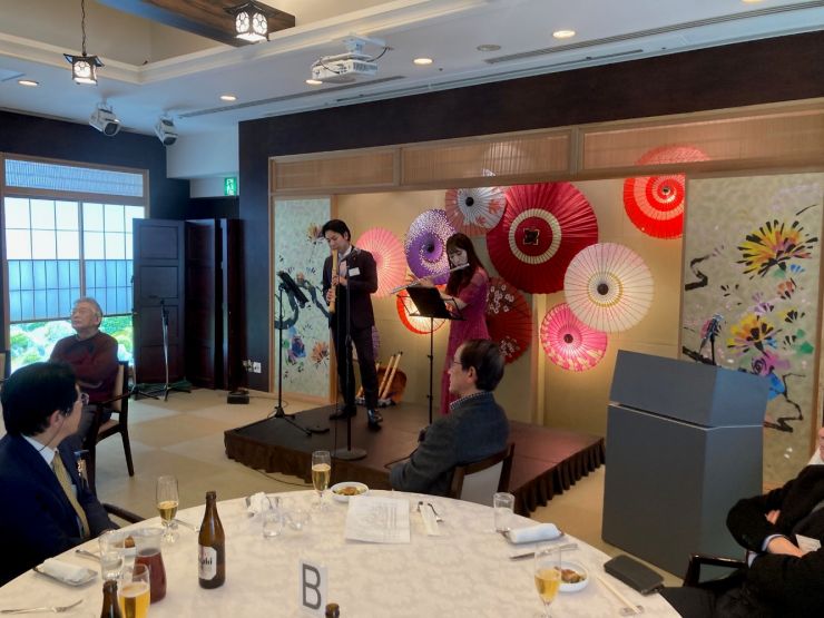 第二部演奏会は、齋藤相談役による乾杯のご発声後、尺八奏者の平澤真悟氏と